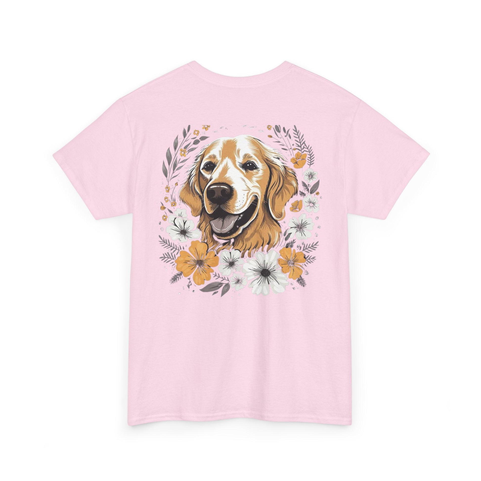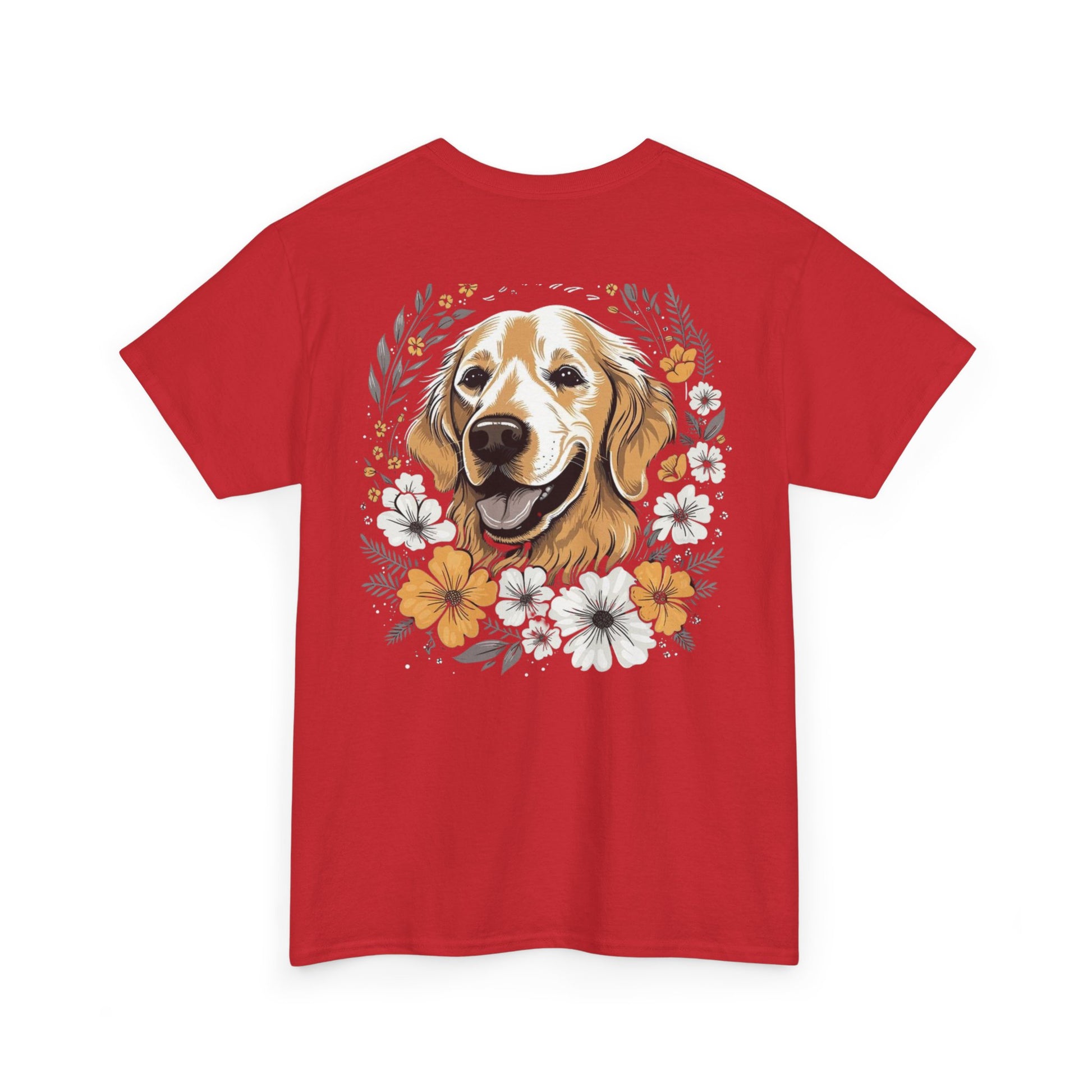 Golden Retriever Floral Unisex Heavy Cotton Tee, Dog Lover Shirt, Pet Gift, Funny Animal Tee, Casual Wear, Birthday Gift