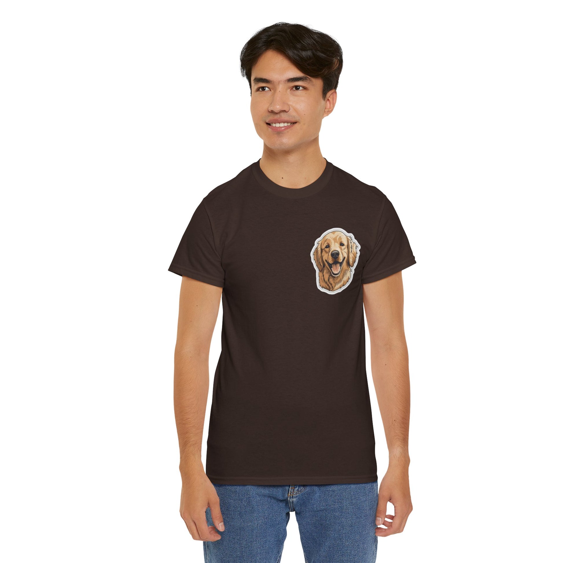 Celebrate the unconditional love of dogs with our Unisex Heavy Cotton T-Shirt, thoughtfully designed for pet lovers, golden retriever enthusiasts, and anyone who believes in loyalty, joy, and tail wags. Featuring a charming illustration of a golden retriever, this tee is the ultimate expression of your love for furry companions.