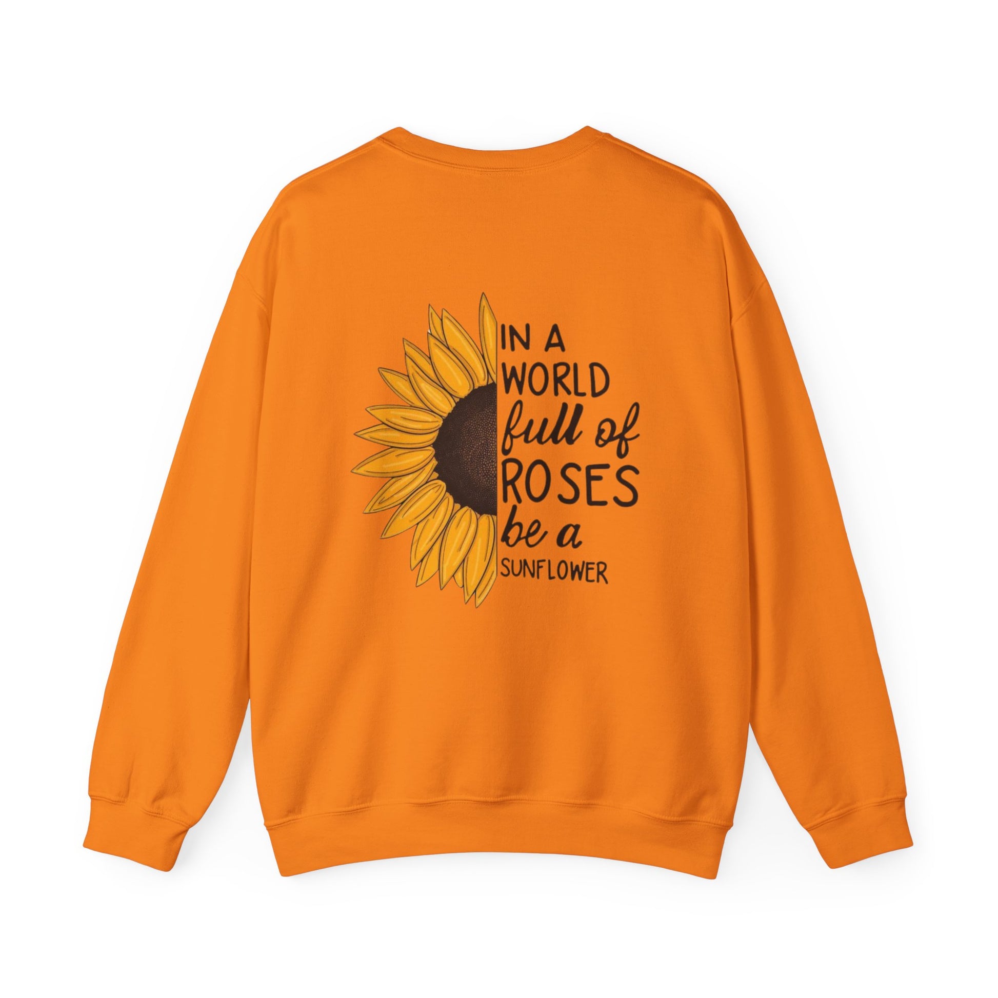 Shine bright and stay warm with this cozy Heavy Blend™ Crewneck Sweatshirt, featuring the uplifting quote: "In a world full of roses, be a sunflower." Designed for women who embrace individuality and radiate positivity, this sweatshirt is perfect for chilly days, casual outings, or cozy nights in. A thoughtful gift for birthdays, holidays, or simply to spread sunshine!