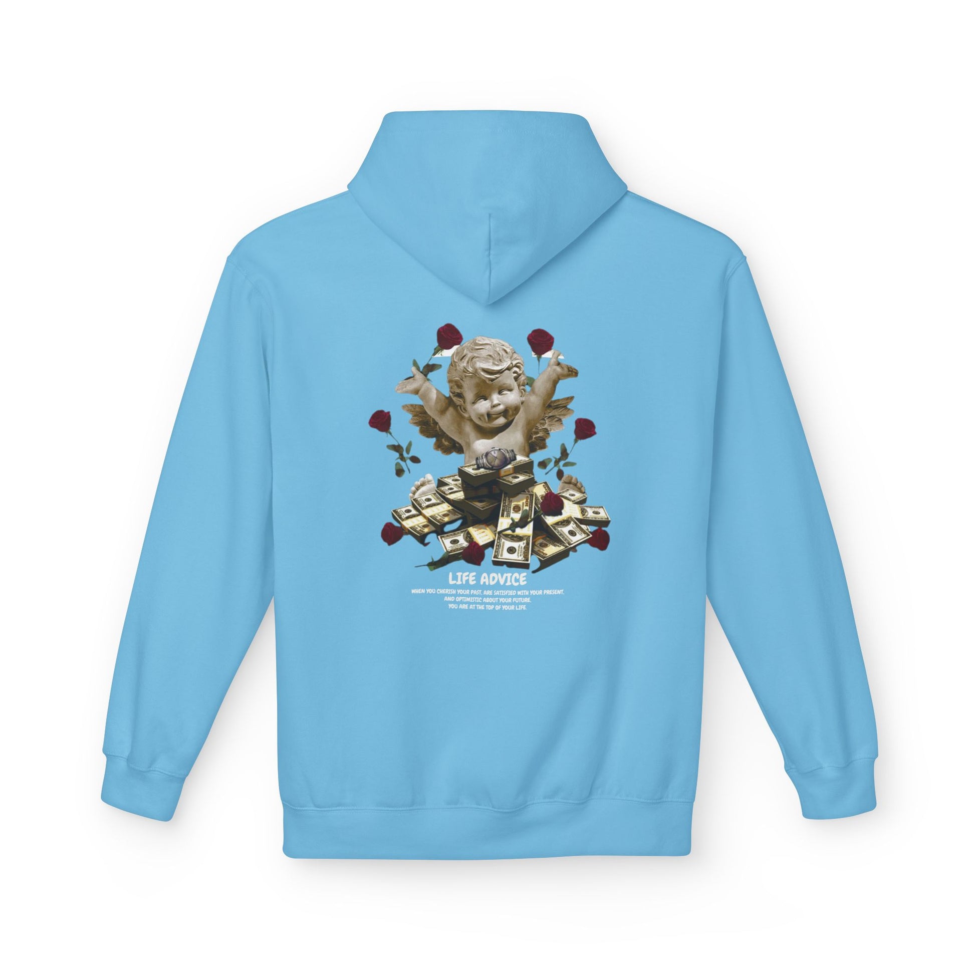 Step into cozy confidence with this Men’s Midweight Softstyle Fleece Hoodie, crafted for those who love comfort with a creative edge. The unique angel, roses, and cash design adds a bold, dreamer’s vibe—perfect for everyday wear, laid-back weekends, or standout street style.