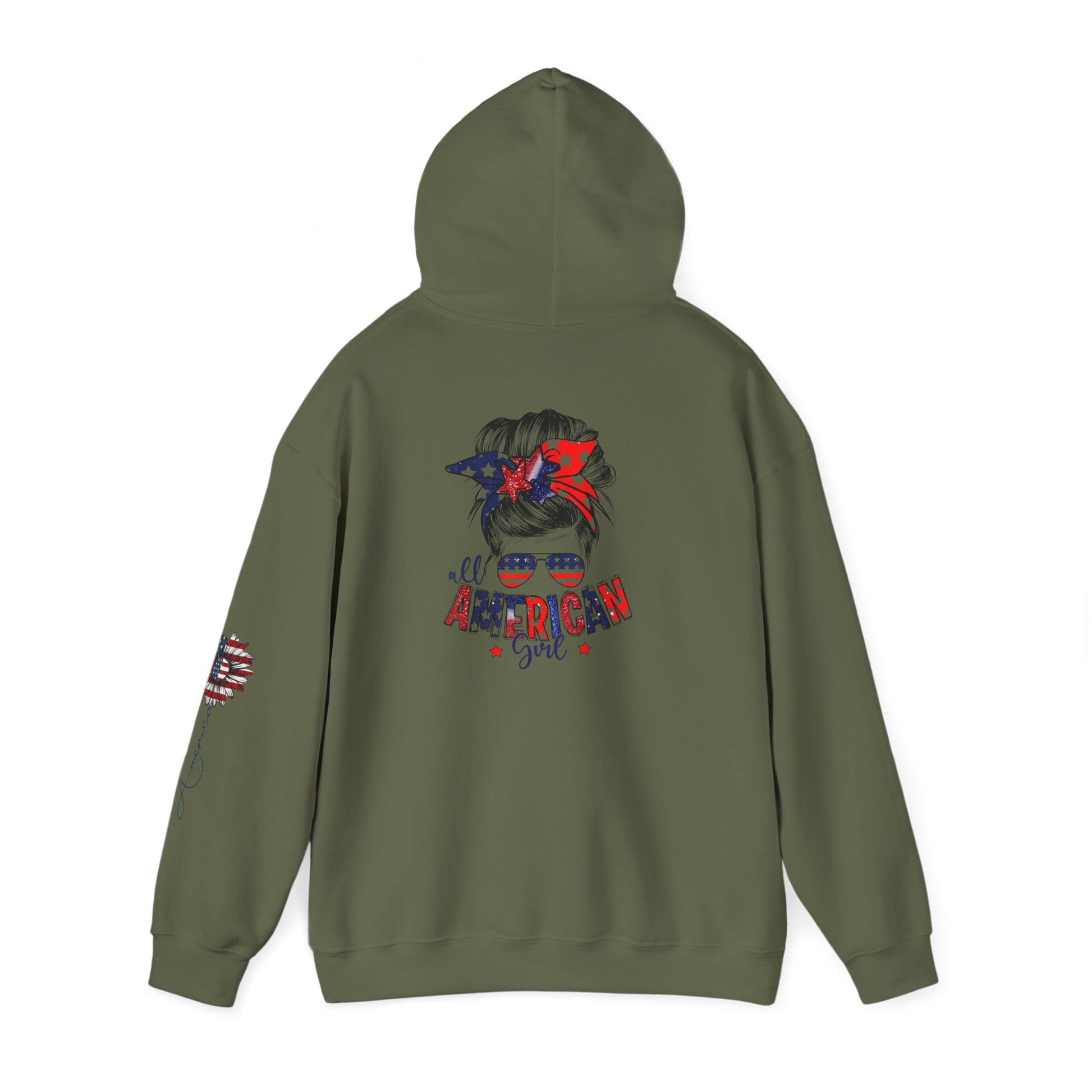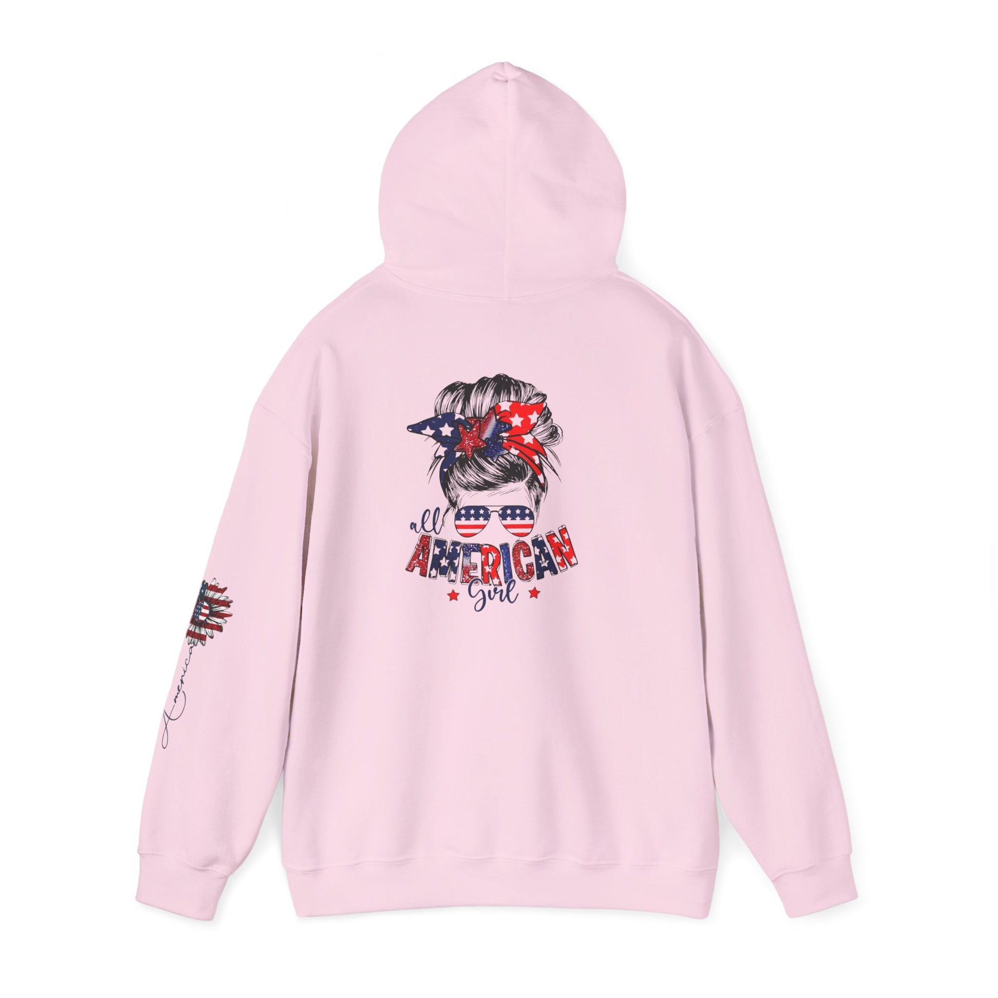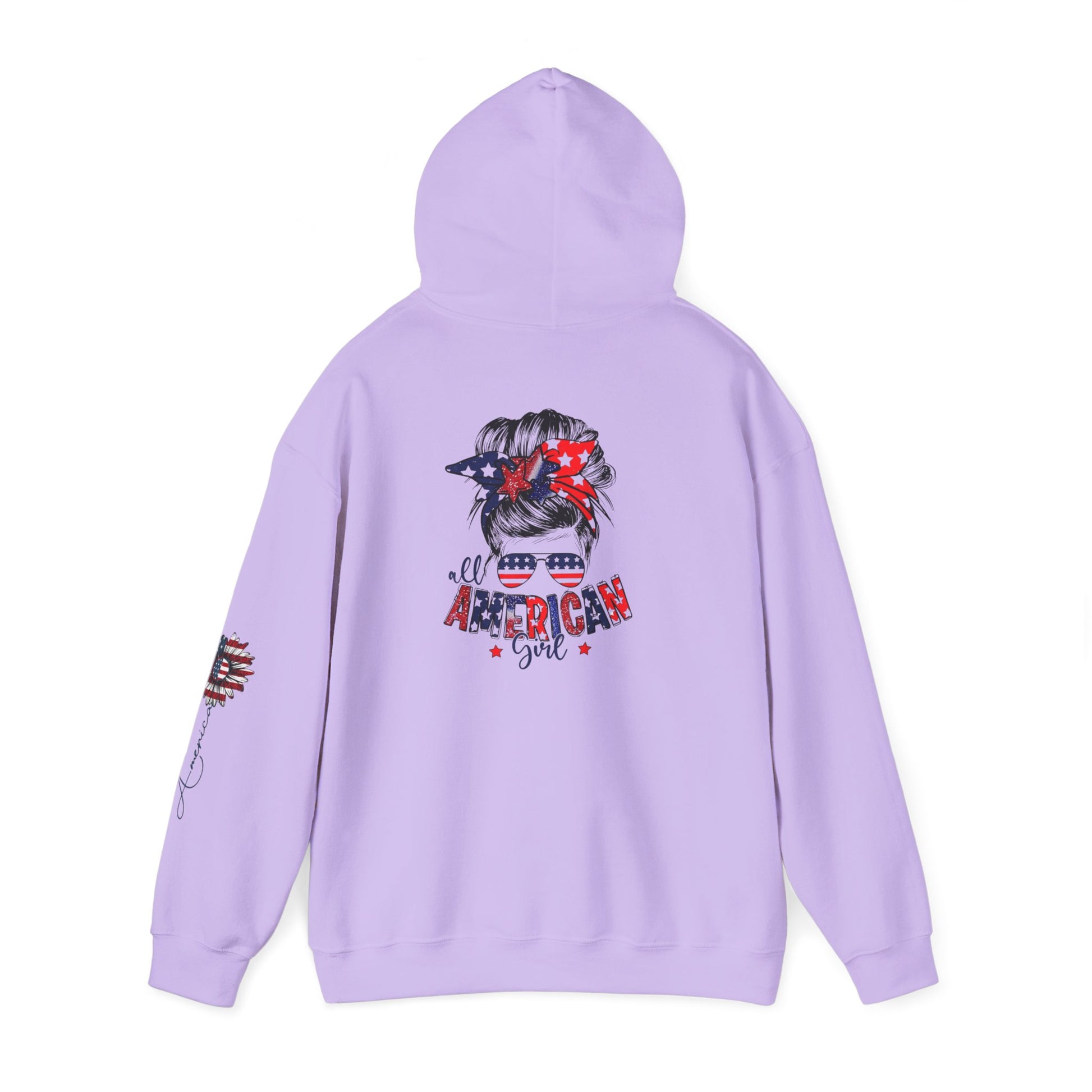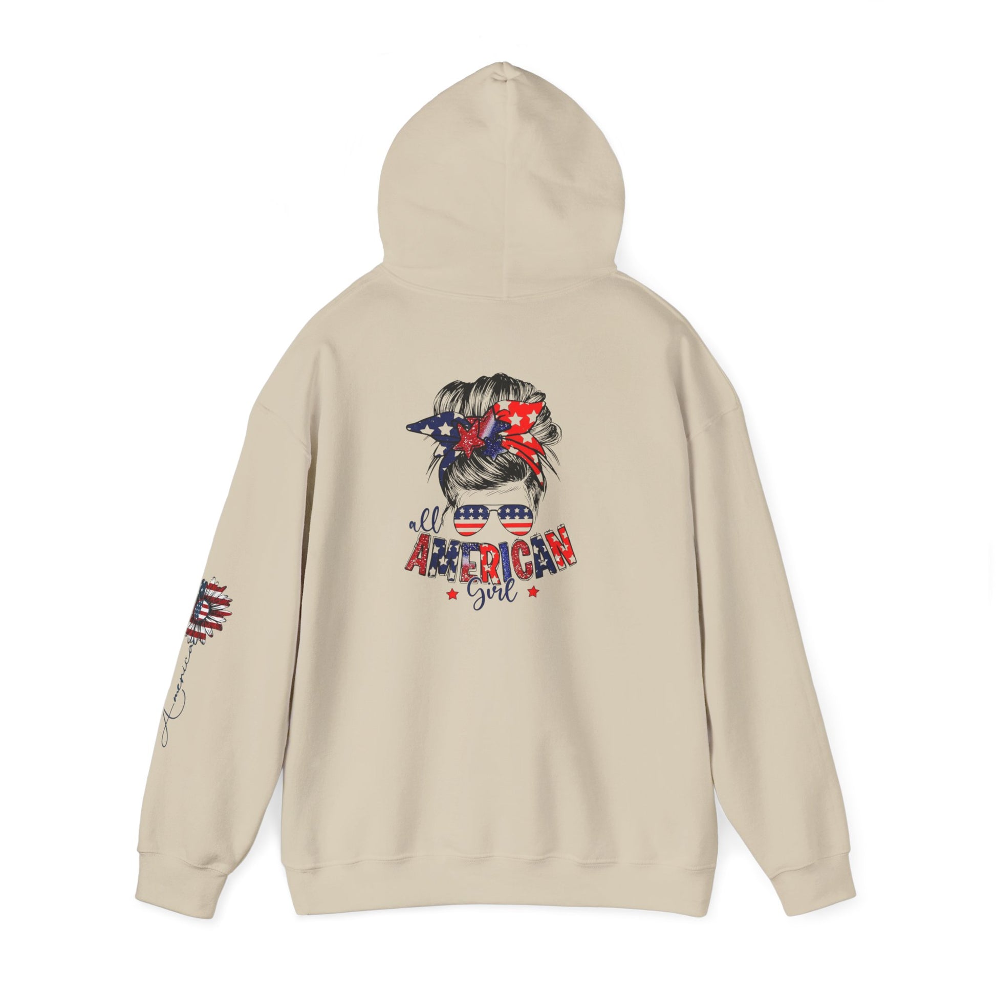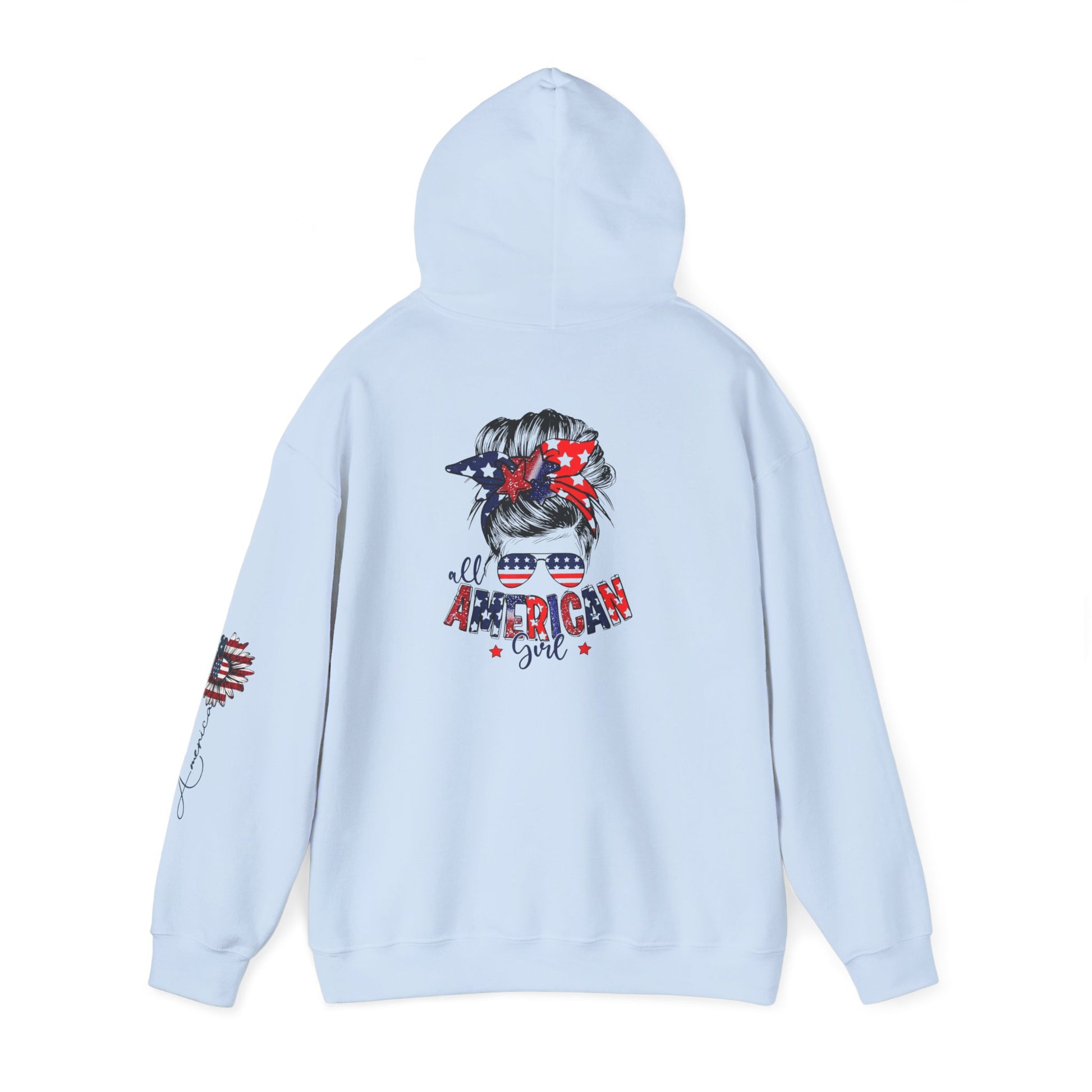 USA All American Girl Hoodie - Unisex Heavy Blend Sweatshirt, Patriotic Apparel, 4th of July Outfit, Casual Wear, Gift for Her